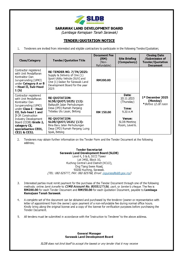 Sarawak Land Development Board (SLDB) / Lembaga Kemajuan Tanah Sarawak (LKTS) is a State